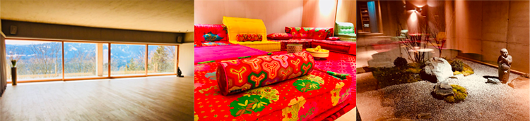 Das 145qm Panorama-Yogaloft mit Dachterrasse sucht seinesgleichen, die Zimmer im ZEN Stil (jedes Zimmer hat ein eigenes Bad und WC), das Haupthaus modern mit kleiner Sauna und - ganz neu! - chilliger Tee-Lounge unterstreichen das relaxte Ambiente aufs Feinste. Außerdem können Massagen und Treatments vor Ort gebucht werden.