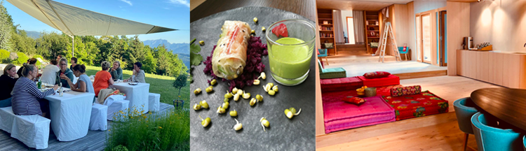 Draußen laden ein traumhafter Infinity Pool (dank eigener Solaranlage auch im Herbst noch herrlich warm) mit großer Terrasse und ein großer lauschiger Garten zum Entspannen ein … das Essen bio, vegan und einfach fantastisch lecker, immer ganz frisch zubereitet und zusammengestellt von Hildegard Biller, der "Soami-Seele" und ihres Zeichens Ernährungstherapeutin mit 25jähriger Erfahrung in Heilnahrung.